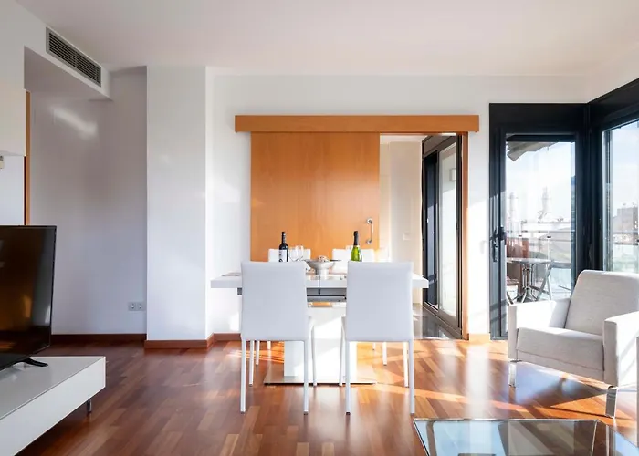 Die Unterkunft bietet zudem eine voll ausgestattete Küchenzeile. Die nächstgelegene Bushaltestelle Cristobal de Moura - Rambla Prim befindet sich nur wenige Schritte entfernt von den 2-Zimmer-Apartments. Das Apartment verfügt über eine Terrasse, wo sich die Gäste entspannen können.
